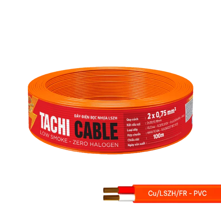 Dây điện chống cháy TACHICABLE, kiểu dây oval dẹt 2 ruột dẫn mềm Cu/LSZH/FR-PVC